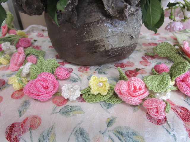 お知らせ(2025年5月その③) バラ園(2025年 Ver.) 職員さんが飾ってくれる、ふるさとジョアンの玄関です。 左側 中央 右側 猫のあんじゅさん 花瓶に生けてある生花は、群星(ぐんせい)という品種のバラです。 全体像 6月、花瓶のバラを手芸に変えて・・・。 上から 全体像