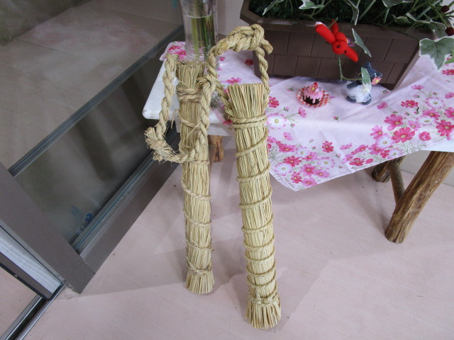 ふるさとジョアンの玄関には、すすきと「ぼうじぼ」と呼ばれる藁(わら)で作った棒が飾ってありました。