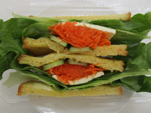 にんじんの甘みが美味しいヘルシーサンド。食パンにもにんじんを練り込みました。
